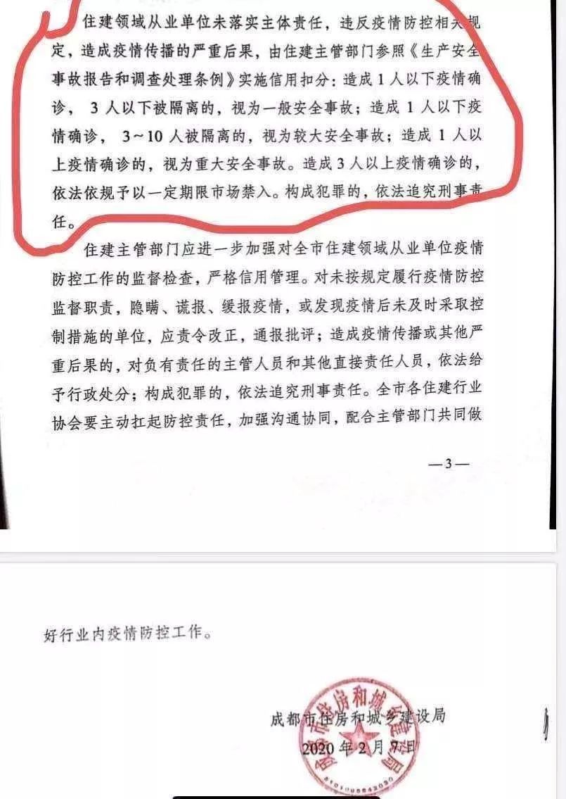 2月7日,成都市住房和城鄉(xiāng)建設(shè)局發(fā)布了《關(guān)于將新型冠狀病毒感染的肺炎疫情防控工作納入住建領(lǐng)域市場主體信用評(píng)價(jià)管理的通知》。
