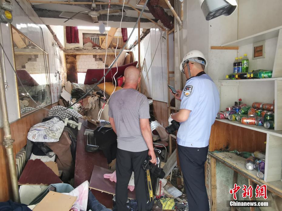 8月5日早8時(shí)左右,位于哈爾濱市道里區(qū)安順街的一家餐館發(fā)生疑似燃?xì)獗?,現(xiàn)場一片狼藉,爆炸震碎二樓樓板,一老人墜落受傷,餐館老板娘受傷嚴(yán)重,目前兩人已被送往醫(yī)院就醫(yī)。爆炸造成路邊多輛車輛受損,附近居民樓玻璃被沖擊波震碎。中新社記者 范英杰 攝