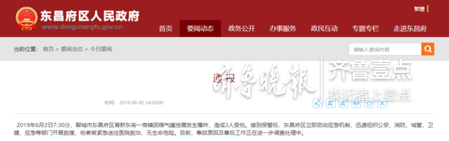 6月2日下午2點(diǎn)20分,東昌府區(qū)人民政府發(fā)布《通報(bào)》稱(chēng),2019年6月2日7:30分,聊城市東昌府區(qū)育新東街一商鋪因煤氣罐泄漏發(fā)生爆炸,造成3人受傷。