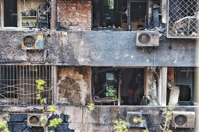 該小區(qū)4號(hào)樓1單元101的劉先生家則基本上化為灰燼。記者在他家看到,墻壁被燒成焦黑色,地上沉積著到腳踝的灰燼,整個(gè)房子被燒成毛坯房樣?!吧嘲l(fā)、柜子這些大件物品都沒有了,廚房、衛(wèi)生間都是玻璃的,也都燒化了,還有一些字畫。”劉先生說,家里藏有不少洋酒等,損失慘重。