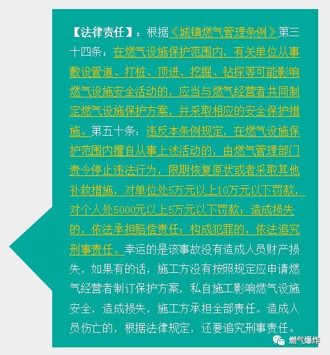 2018年11月11日上午7時(shí)許,青島市北區(qū)嘉定路16號(hào)保利里院里小區(qū)5號(hào)樓發(fā)生一起居民燃?xì)忾W爆事故,事故造成2人受傷以及多戶(hù)居民財(cái)產(chǎn)損失。據(jù)報(bào)道,事故原因調(diào)查及善后工作正在進(jìn)行中......【爆炸新聞】10多層樓玻璃被炸飛!2人受傷!青島一小區(qū)發(fā)生燃?xì)忾W爆事故!這波知識(shí)必須要知道!?天然氣清潔高效,其推廣使用,給市民帶來(lái)了極大的方便。但因燃?xì)夤芫W(wǎng)遍布城市地下區(qū)域,管道伸入到居民家中,居民又是直接操作者使用者,燃?xì)獍踩珕?wèn)題就成了涉及每個(gè)人的問(wèn)題。無(wú)論是政府、燃?xì)饨?jīng)營(yíng)企業(yè)、還是居民用戶(hù)都應(yīng)格外重視燃?xì)獍踩岣呷細(xì)獍踩?zé)任意識(shí),避免事故的發(fā)生。為此,應(yīng)在查明“11.11青島市北區(qū)保利里院里小區(qū)燃?xì)忾W爆事故”原因的基礎(chǔ)上,落實(shí)各主體責(zé)任,并依法維護(hù)各自權(quán)益。律師根據(jù)多年既往案例,對(duì)燃?xì)馐鹿噬婕暗姆蓡?wèn)題進(jìn)行評(píng)析,希望能為相關(guān)責(zé)任主體提供有益的法律建議。01發(fā)生燃?xì)馐鹿蕰r(shí),各方應(yīng)如何進(jìn)行責(zé)任自查?1、燃?xì)夤拘枰圆榈膬?nèi)容包含但不限于:在為用戶(hù)開(kāi)通燃?xì)鈺r(shí)是否進(jìn)行了用氣安全教育,是否定期進(jìn)行用氣安全宣傳;是否定期入戶(hù)安檢,用戶(hù)是否在安檢單上簽字確認(rèn),發(fā)現(xiàn)隱患后是否及時(shí)補(bǔ)檢,用戶(hù)是否配合隱患整改;若用戶(hù)安裝有燃?xì)鈭?bào)警器,燃?xì)鈭?bào)警器是否連接電源,燃?xì)鈭?bào)警器是否連接電磁閥?燃?xì)鈭?bào)警器安裝是否符合《城鎮(zhèn)燃?xì)庠O(shè)計(jì)規(guī)范》;用戶(hù)的燃?xì)馄骶撸ㄈ細(xì)庠罹?、燃?xì)鉄崴鳎┦欠翊嬖诔谑褂?,安裝人員及單位是否具備相應(yīng)資格、資質(zhì);用戶(hù)是否存在裝修過(guò)程中未通知燃?xì)夤?,私改燃?xì)夤艿?、包埋燃?xì)夤艿馈⑷細(xì)庠O(shè)施作為負(fù)重支架堆放、懸掛物品或者將燃?xì)夤艿雷鳛殡娖髟O(shè)施的接地導(dǎo)體等隱患;用戶(hù)是否規(guī)范用氣,用氣后及時(shí)關(guān)閉灶前閥;用戶(hù)是否存在自傷自殘等情況;是否投保相關(guān)保險(xiǎn)等。2、事故受害方責(zé)任追究過(guò)程中需要考量的內(nèi)容包含但不限于:燃?xì)夤驹谥脫Q通氣時(shí)是否履行了安全宣傳教育;燃?xì)夤臼欠衩磕甓既霊?hù)安檢并對(duì)燃?xì)怆[患提出整改意見(jiàn);燃?xì)夤景惭b燃?xì)庠?、燃?xì)鈭?bào)警器和電磁閥是否符合國(guó)家規(guī)范;燃?xì)夤咎峁┑娜細(xì)庠睢⑷細(xì)鈭?bào)警器和電磁閥是否質(zhì)量合格;其他需要注意的問(wèn)題。3、燃?xì)庵鞴懿块T(mén)履責(zé)的重點(diǎn)內(nèi)容:1)作為燃?xì)庵鞴懿块T(mén),在事故發(fā)生后,進(jìn)行事故調(diào)查,協(xié)調(diào)燃?xì)夤尽⑹芎θ撕凸?、消防、居民辦事處等部門(mén),委托專(zhuān)家組出具事故調(diào)查的專(zhuān)家分析意見(jiàn),客觀(guān)公正的處理善后事宜,是本部門(mén)的法定職責(zé);2)作為此次事故調(diào)查的主管部門(mén),應(yīng)嚴(yán)格依法依規(guī)處理,還應(yīng)注意事發(fā)現(xiàn)場(chǎng)第一手資料的留存;3)嚴(yán)格遵守法定程序建立事故處理檔案,為今后司法處理保存證據(jù)材料,避免被燃?xì)獍讣芎θ嘶蚱渌黧w投訴;4)依法依規(guī)行使事故調(diào)查職責(zé)過(guò)程中,除了追求效率,還應(yīng)注意保護(hù)各方當(dāng)事人的合法權(quán)利。例如,涉及鑒定應(yīng)提 前通知各方當(dāng)事人,證據(jù)的封存、解封應(yīng)通知各方當(dāng)事人到場(chǎng),涉案相關(guān)信息主動(dòng)公開(kāi)或依申請(qǐng)公開(kāi),選聘事故調(diào)查專(zhuān)家組成員時(shí)應(yīng)留存各專(zhuān)家的資質(zhì)證明等。?02燃?xì)馐鹿拾l(fā)生后進(jìn)入訴訟程序的可能結(jié)果分析根據(jù)既往辦案經(jīng)驗(yàn)及既有案例,律師總結(jié)法院裁判觀(guān)點(diǎn)如下:1、關(guān)于事故事實(shí)的認(rèn)定,一般以事故調(diào)查專(zhuān)家組出具的專(zhuān)家分析意見(jiàn)為準(zhǔn)。2、在居民燃?xì)獗及讣?,燃?xì)夤竞苌儆胁怀袚?dān)責(zé)任的情形。3、作為事故的受害方,選擇盡可能多的與事故相關(guān)的被告,越有利于維護(hù)自身權(quán)利。4、司法機(jī)關(guān)在民事責(zé)任領(lǐng)域,一般會(huì)站在同情弱者的角度裁判。5、若燃?xì)獗ㄊ鹿氏等藶楣室庠斐?,行為人可能?huì)涉嫌刑事犯罪,罪名包括但不限于爆炸罪、以危險(xiǎn)方法危害公共安全罪等。?案例一12012年7月27日重慶奉節(jié)縣一居民家發(fā)生天然氣意外泄漏事故,發(fā)生事故的居民家中所有家具和電器都被燒毀,窗戶(hù)的玻璃已被震爛。爆炸造成一家6人燒傷,最終一人搶救無(wú)效死亡。據(jù)網(wǎng)上報(bào)道爆炸是由于天然氣管道與輸氣軟管之間存在縫隙,導(dǎo)致天然氣泄漏引發(fā)的。在該戶(hù)家中,發(fā)現(xiàn)新買(mǎi)的燃?xì)庠罹?,是個(gè)三無(wú)產(chǎn)品。該戶(hù)的燃?xì)夤艿?,是由兩根軟管接起?lái)的,一根軟管不夠長(zhǎng),中間還用一根硬塑料管連了起來(lái),還使用了膠水來(lái)粘接,這是非常危險(xiǎn)的作法,連接的塑料管是硬的,天然氣完全可能因連