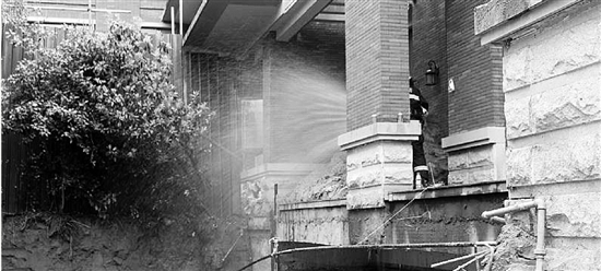 消火栓取水時(shí),新的問(wèn)題出現(xiàn)了?!跋浪ㄔ谝惶幓趬Ω浇鏊诰o貼著墻面,根本就沒(méi)辦法用?!睘榱瞬坏⒄`救援工作,消防官兵立即用器材對(duì)消火栓周邊墻壁進(jìn)行處置,留出足夠的空間供水帶取水。